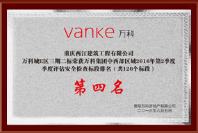 • 2016年度万科城E区荣获第二季度第四名